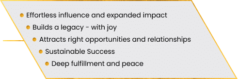 It’s about completely breaking free from old ways of operating, aligning with your true potential, achieving extraordinary results with clarity and purpose – and creating a lasting legacy.